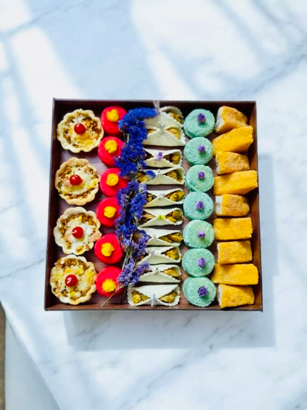 اندازه۴ عدد کاپ کیک ژامبون ۱۳ عدد کاناپ کیک مرغ ۱۰ عدد تاکو مرغ ۹ عدد فرنچ سوخاری