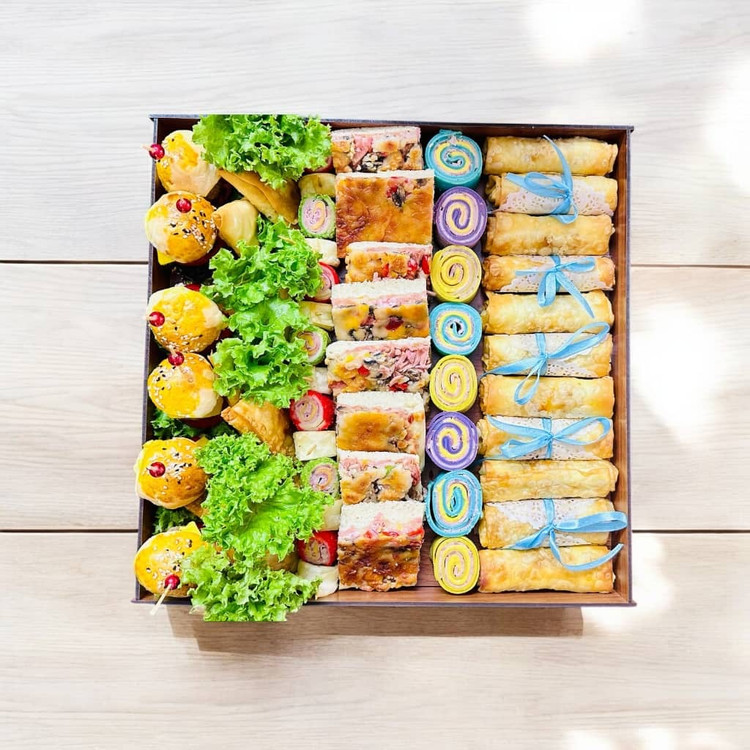 اندازه۱۱ عدد اسپرینگ رول / ۸ عدد کرپ ژامبون / ۸ عدد مینی پیتزا / ۷ عدد رول ژامبون سوخاری / ۷ عدد سوسیس خلالی / ۱۰ عدد سمبوسه / ۶ عدد مینی همبرگر