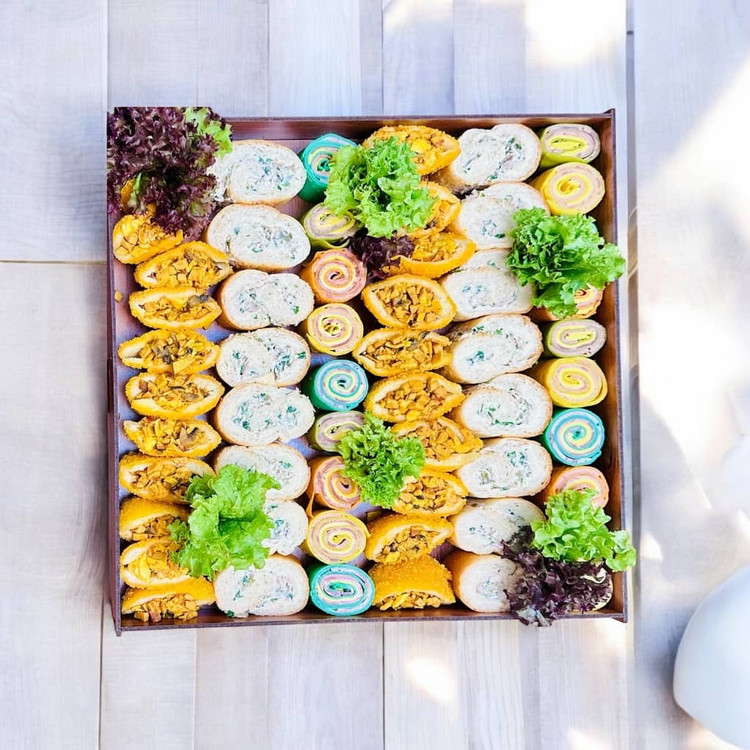 اندازه۱۸ عدد کرپ ژامبون/۱۶ عدد رولت مرغ/ ۲۰ عدد جیب تاجر