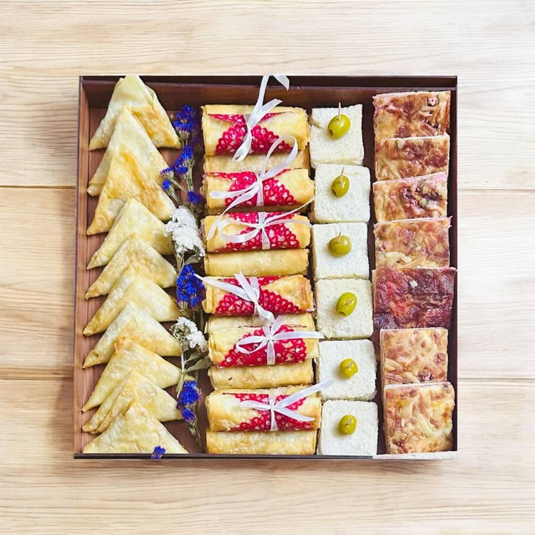 اندازهسینی شامل ۷ عدد مینی پیتزا ۶ عدد کاناپ الویه ۱۶ عدد اسپرینگ رول سوسیس ۱۰ عدد سمبوسه